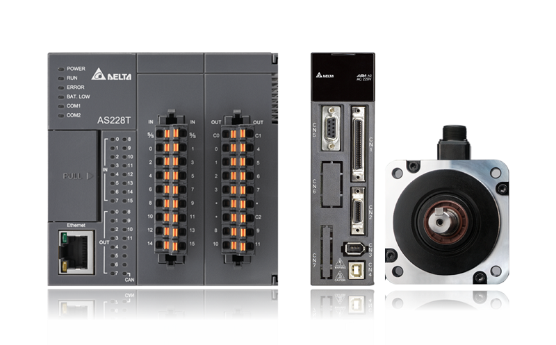 The Plastic Molding Machine Solution adopts Delta’s high-performance industrial automation products Compact Modular Mid-range PLC AS200 and AC Servo Drive & Motor ASDA-A2 Series. This core system enables the high-speed response function to substantially boost the equipment efficiency and simultaneously reduce energy consumption.