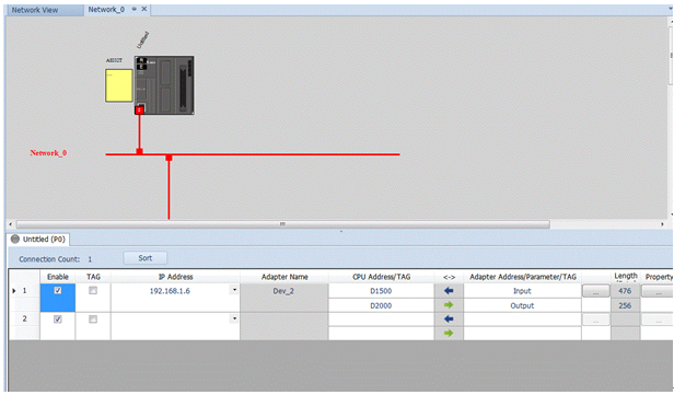 6. Set up the CPU Address/TAG and Adapter Address/Parameter/TAG, and then download these parameters to the PLC.