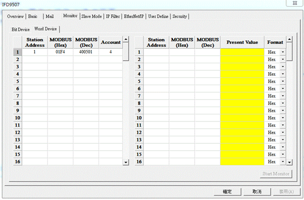 7. Set up the IP address of the IFD9507 Series and the monitoring information.