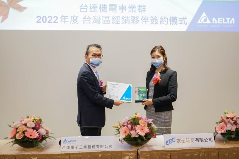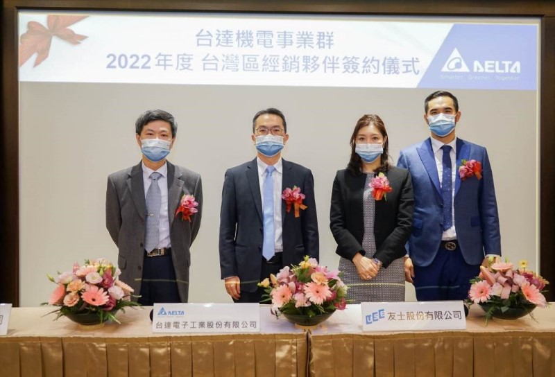 Delta IABG held its 2022 Taiwan Distributors Cooperation Contract Signing Ceremony on Dec. 23rd, 2021. IABG invited USE Electronics, ACE Pillar, and Jidien to review the results of 2021 and envision the coming year’s outstanding sales performance.