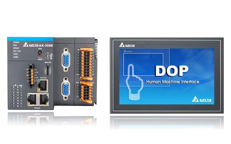 The control layer adopts the highly efficient and flexible PLC-Based Motion Controller AX-3 Series, which provides high-speed computing and various motion control commands. The solution transmits signals to the Human Machine Interface DOP-100 Series via Modbus communication to present various monitoring data and improve management efficiency.