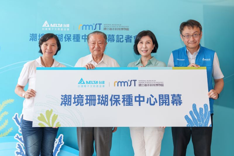The Chaojing Coral Conservation Center is officially launched. Mr. Bruce Cheng(R2) , Delta’s founder and Chairman of the Delta Electronics Foundation, Ms. Su-Fen Chen(R1), Director-general of NMMST, Ms. Shan Shan Guo(L2), chief brand officer of Delta and Mr. Wim Chang, CEO of the Delta Electronics Foundation attended the ceremony.