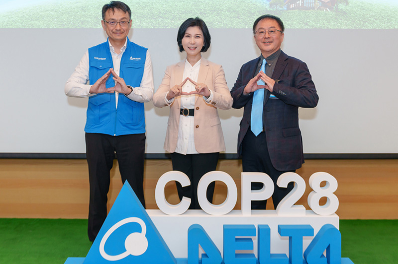 Delta announced to attend COP28, Ms. Shan-Shan Guo(middle), Chief Brand Officer of Delta and Vice Chairperson of the Delta Electronics Foundation, Mr. Jesse Chou(right), Chief Sustainability Officer of Delta and Wim Chang, CEO of the Delta Electronics Foundation participate in the press conference.