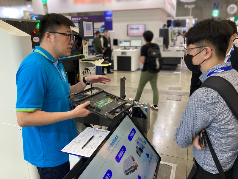 Visitors focused on the features of the Smart Insertion Machine and engaged in lively communication with Delta staff onsite.