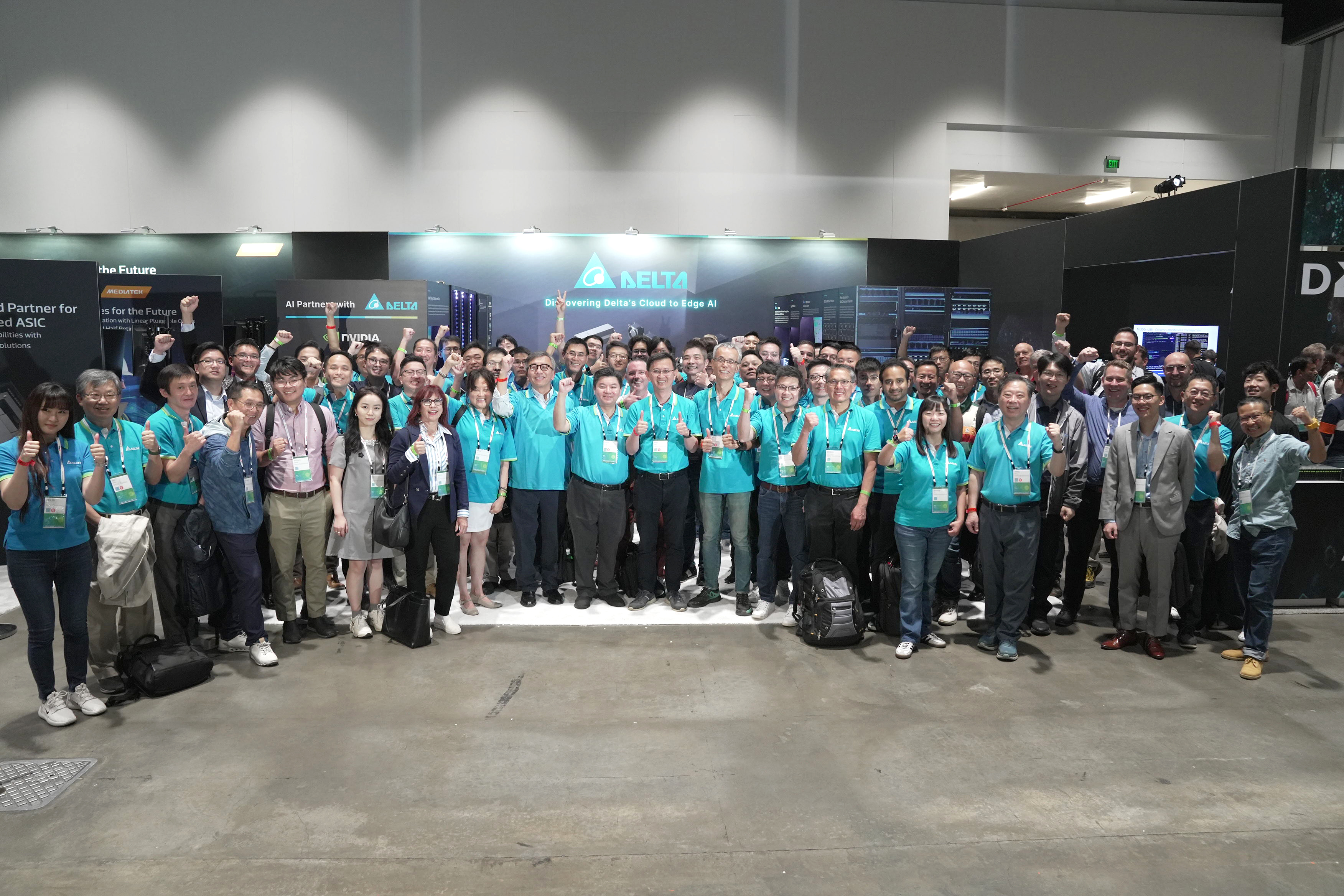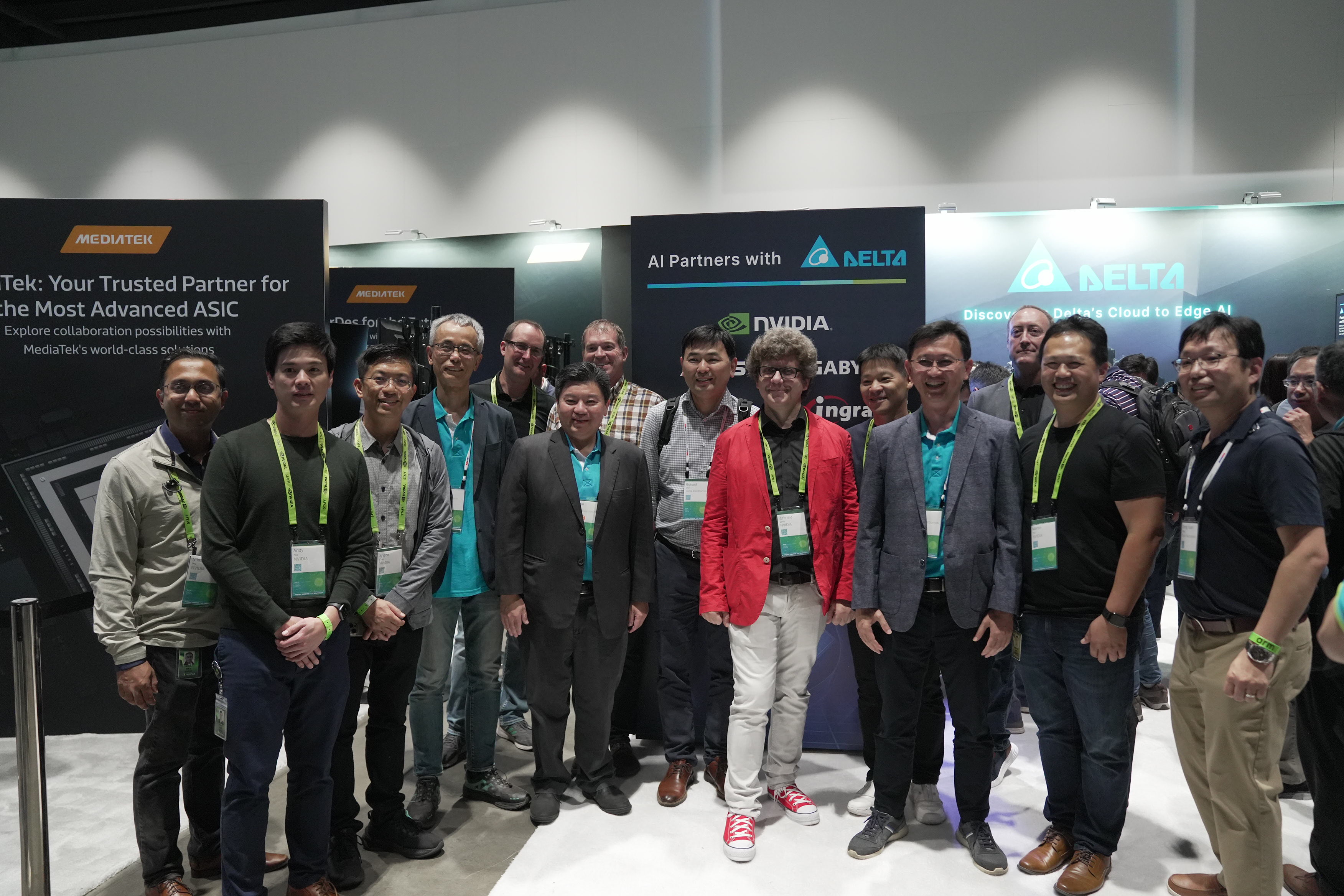 The NVIDIA team visited Delta’s booth and Mr. Ted Shyy, Delta's EVP of Power Electronics (fourth from left), together with Mr. Ares Chen, General Manager of PSBG (third from right), hosted personally.