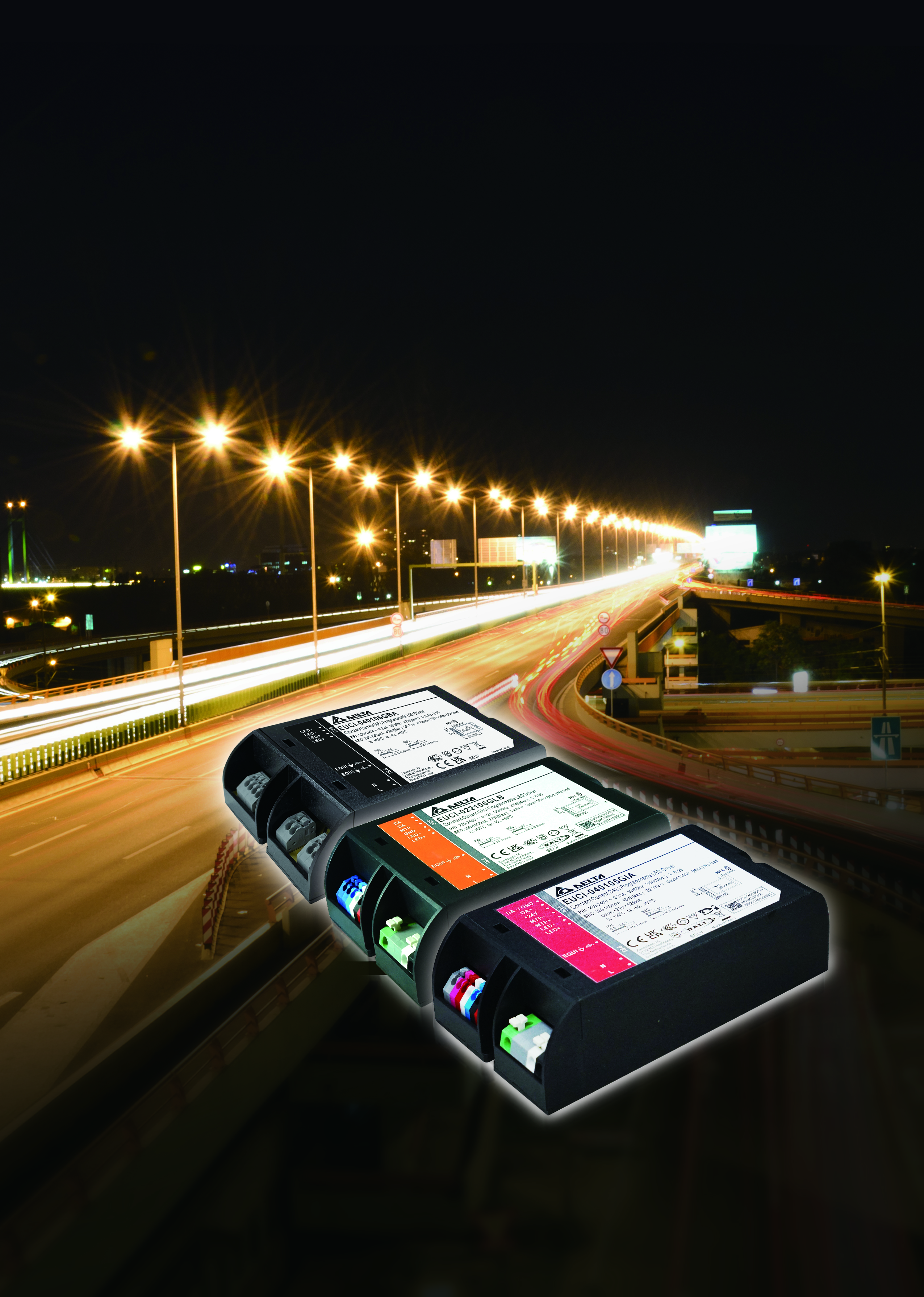 Lighting in residential areas and on highways differs in brightness levels and color temperature, and Delta’s LED drivers provide different power outputs to meet varied demands.