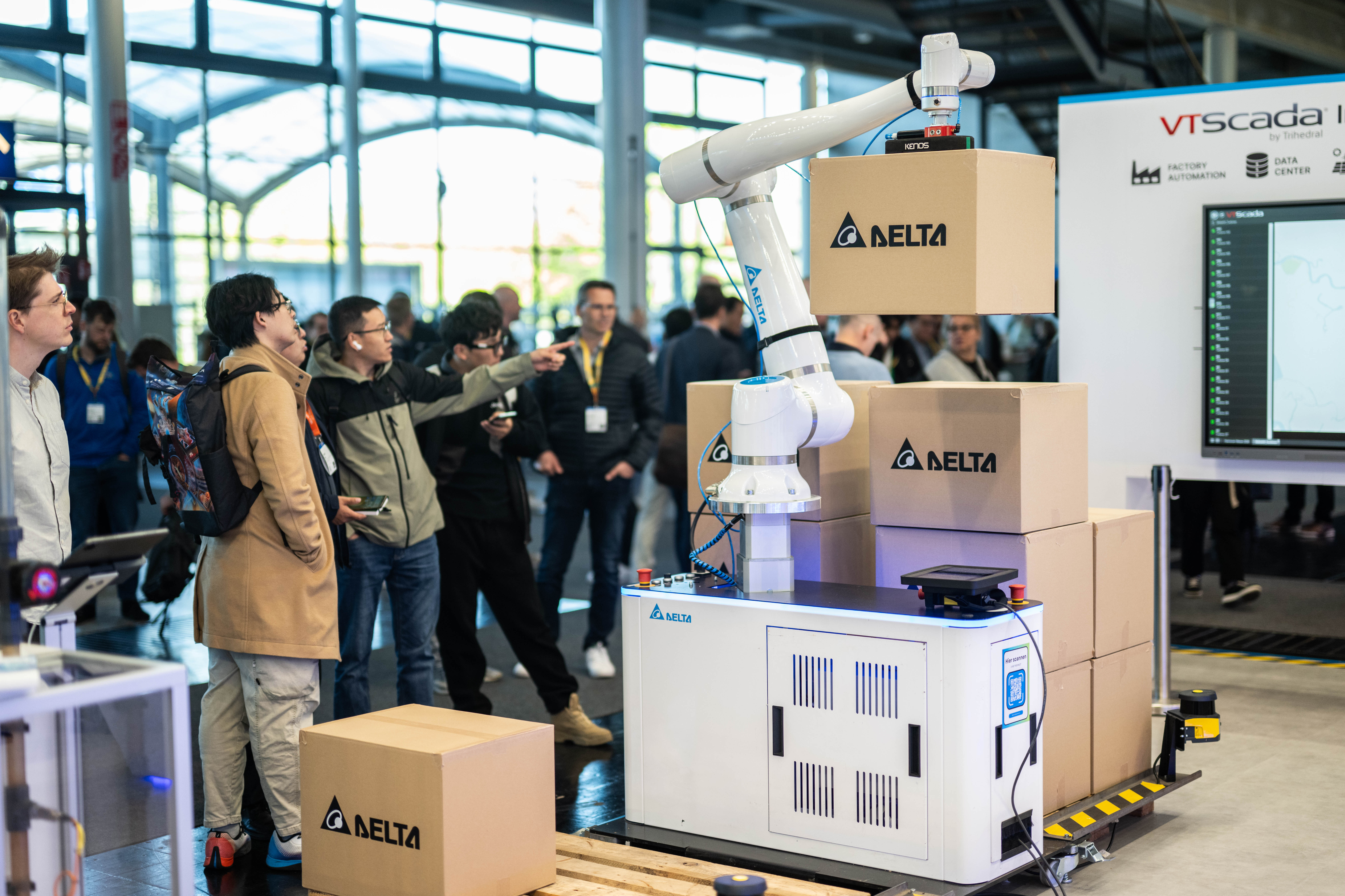 Delta attracted significant interests with its cyber-physical integrated inserter, Cobot application on palletizing, functional safety control solution, and VTScada cross-region real-time monitoring.