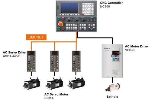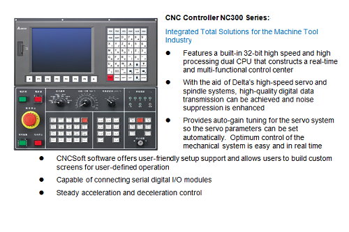 Delta integrates the CNC Controller NC300 Series, AC motor drive, and AC servo drive and motors to provide a complete CNC solution for machine tools that carve wooden cases.