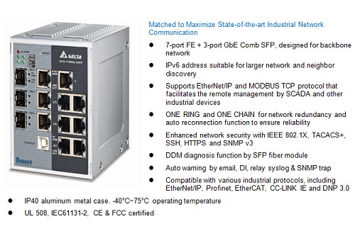 Delta Industrial Ethernet Switches and WLAN for Harsh Application Environments