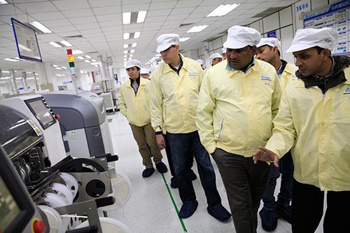 The distributors visit the laboratories and production lines of Delta’s Wujiang Plant and are impressed by the scaled and organized production lines.