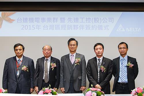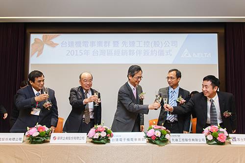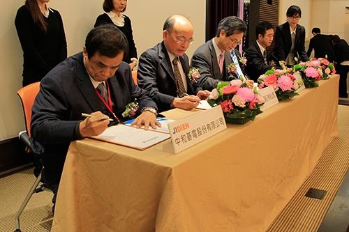 Contract signing representatives (from left to right): Jidien President Mr. Shang-te Seng, ACE Pillar President Mr. John C. C. Lin, IABG General Manager Mr. Simon Chang, USE Electronics Assistant Manager Mr. Liao Ming-hwa Liao, and SYN-TEK Chairman Dr. David Tsai