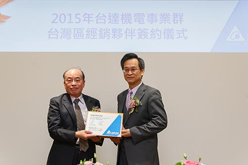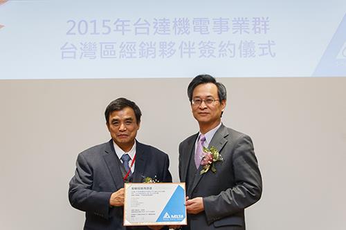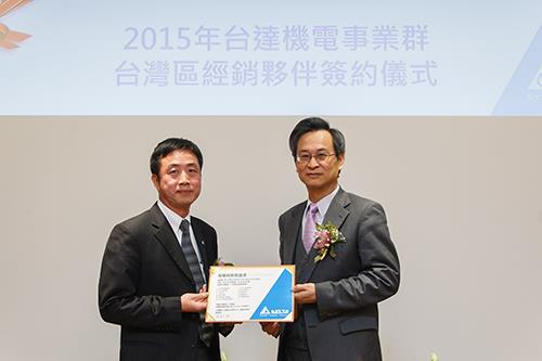 IABG General Manager Mr. Simon Chang (right) presents a distribution authorization certificate to Jidien President Mr. Shang-te Seng (left)
