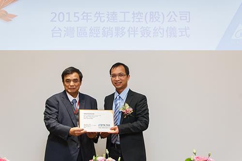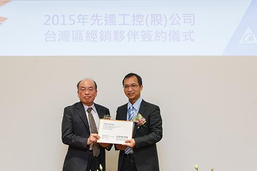 SYN-TEK Chairman Dr. David Tsai (right) presents a distribution authorization certificate to Jidien President Mr. Shang-te Seng (left)