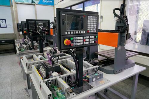 The multi-axis CNC demo sets in YunTech’s Electromechanical Integration Practice Center integrate Delta’s CNC controllers, servo drive systems, and PLCs
