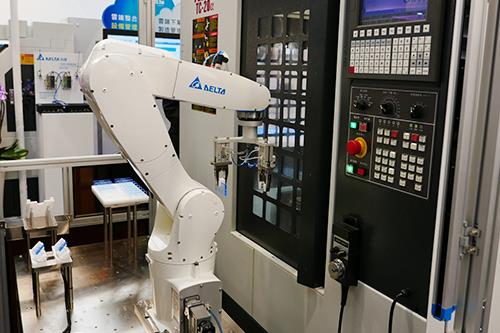 Delta’s partner, Fair Friend, presents “Two Machine Tools with One Robot” at the Taipei Nangang Exhibition Hall, using the Delta Articulated Robot DRV90L Series, which performed workpiece / finished good pick-and-place for two CNC machines