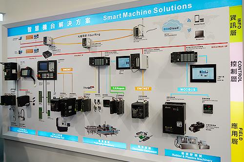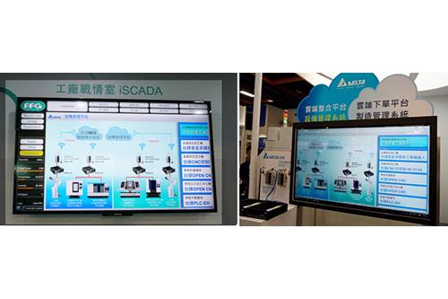 Delta’s Equipment Data Acquisition Platform DIALink collects the operation information of Delta and Fair Friend’s machine tools and uploads analyzed information to the cloud for real-time monitoring at both Delta (right) and Fair Friend’s (left) booths