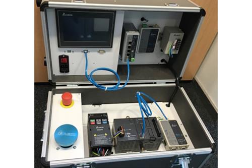 Within a single suitcase, Delta’s Integrated Factory Control and Ethernet/IP Solution demonstrates a remote monitoring and control system for factory production management with multiple Delta automation products, presenting the smart manufacturing proficiency of Delta’s solution