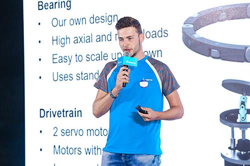 The team from the Netherlands participates in the contest for the first time. The student presents its design principles, features and applications of the robotic wrist to the judges.