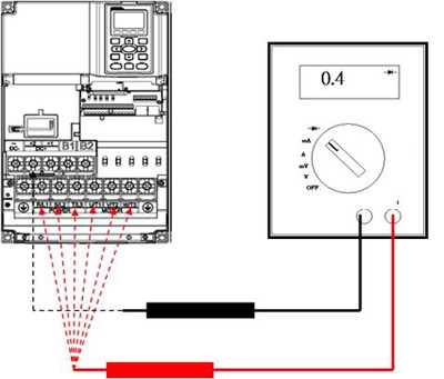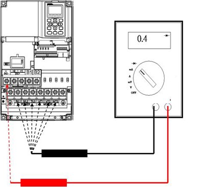 3. Use the red stick to touch DC- (-) and the black stick to touch R, S, T, U, V, W. The measured value is forward bias 0.4.
