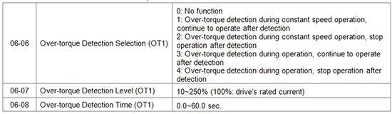 Yes, the motors may be damaged due to over current. When the rated current of the AC motor drive is larger than the motor, the protection level is also higher. If the load increases or a motor jam occurs, the rise in current may damage the motor. A user can modify the Over-torque Detection parameters to adjust the current level, time, and action to protect the motor.