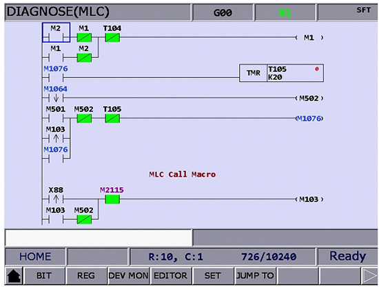 Yes, it has a "MLC Online Editing" function. Delta's CNC controller not only provides MLC editor software for users to design user-defined programs, it also allows users to import and export MLC programs through a USB interface. You can monitor MLC ladder programs and the changes of I/O points on the screen of Delta's CNC controller directly. Also, you can use the "MLC Online Editing" function to perform the editing and saving of files. This function is convenient for improved process development and debugging maintenance.