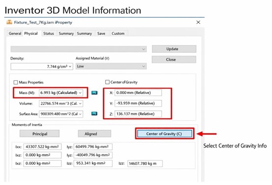 1. Use CAD software to verify the jig information on the flange, such as weight, center-of-gravity offset, and inertia values.
