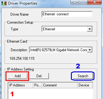 Please open PMSoft software and select the communication setting by clicking 【communication】. Please select the corresponding driver that you chose in COMMGR. (Shown in the window on the right.)