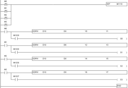 Yes, the PLC's "DDRVI" command with the flag "M1119" together can output two variable speeds of continuous pulses. Simply input two sets of frequency and output pulse numbers into the corresponding data register of "DDRVI" and set the flag "M1119" to ON. You will now get a two variable speed continuous pulse output as shown in the figure below. (Note: this function is available for the PLC models DVP28SV with firmware version 2.0 and the higher level models.)