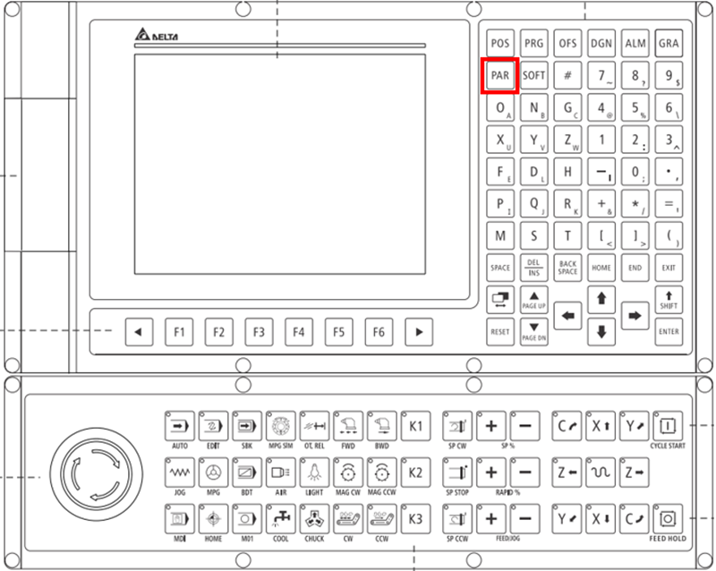press the PAR button on the main operation panel to enter the parameter page (as shown in the red box in picture 1). For the NC50 Series, connect a keyboard and