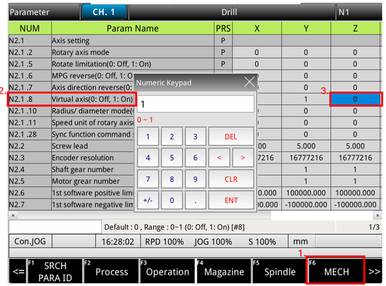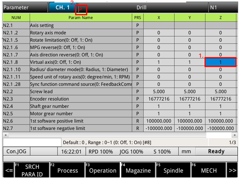 change the corresponding axis value to 1 to enable the virtual axis function, as shown in picture 2.