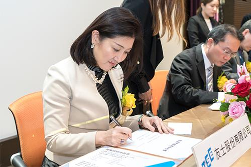 「2020年台灣經銷商簽約儀式」簽約代表:(左起)友士加藤純子董事長、台達機電事業群劉佳容總經理、羅昇李長堅董事、中和碁電黃興隆副總