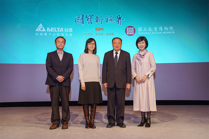 (右至左) 台達電子文教基金會副董事長郭珊珊、台達創辦人暨台達電子文教基金會董事長鄭崇華、故宮博物院副院長余佩瑾與故宮博物院教育展資處處長徐孝德於故宮文會堂合影