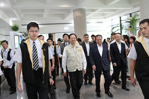行政院長江宜樺今(16日)參訪台達桃園研發中心,台達創辦人鄭崇華先生與董事長海英俊先生親自接待。