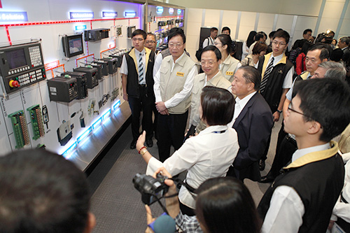 一行貴賓與媒體參觀桃園研發中心展示間。