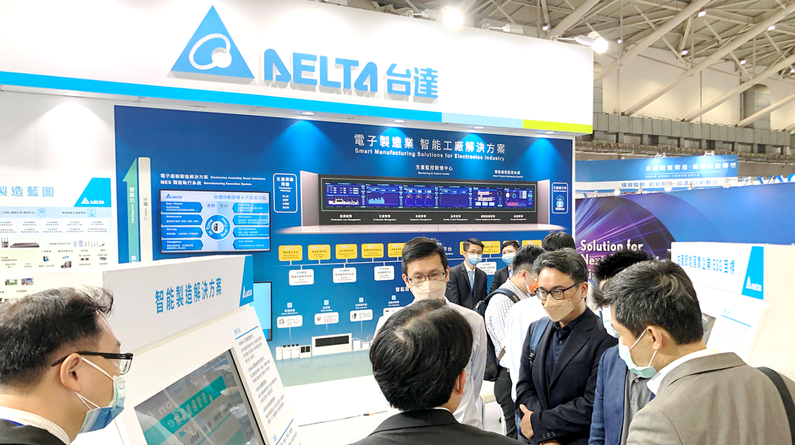 台達智能製造整體解決方案,從OT層設備數據整合、聯網,到IT層MES、物流等管理模組,皆可提供相應方案,在現場吸引許多來賓詢問。