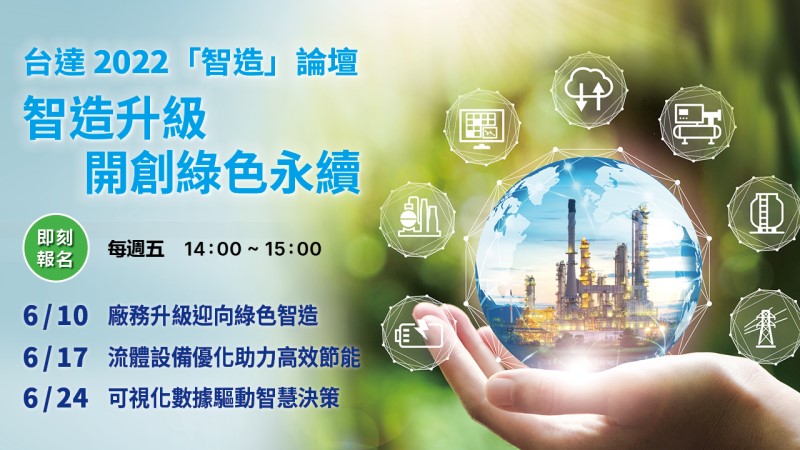 台達智能製造線上論壇6月將聚焦「智造升級開創綠色永續」主題,從廠務升級、流體設備與數據可視化角度,帶領製造業者突破能源挑戰,開創具永續發展性的智造未來。