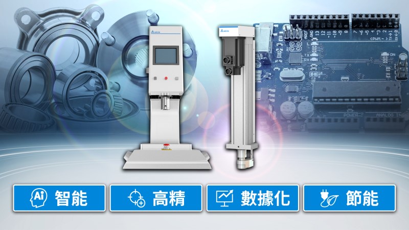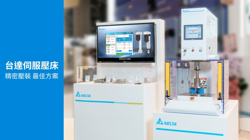 具備智慧化與友善使用介面的台達伺服壓床,適用於傳動零組件、電動機械、五金零組件、電子電器零件壓裝等多種產業。