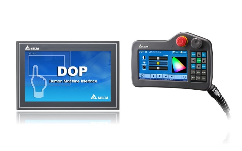 驅控一體機ASDA-MS同時搭配人機介面DOP-100系列及手持式人機介面DOP-H07系列。人機介面DOP-100系列顯示系統狀態,且支援混線生產,輕鬆設定即達成混線生產需求。手持式人機介面DOP-H07系列内建教導器功能,可錄製機器人運行軌跡的點位及類型,可達高速、高精及柔順的澆鑄效果。