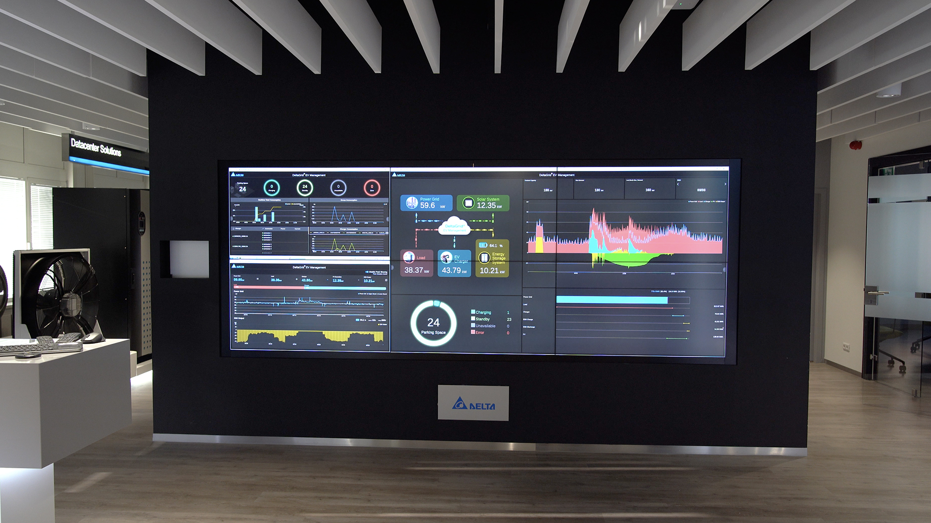 台達電動車充電管理系統DeltaGrid® EVM 整合充電樁、儲能與太陽能系統資訊於單一介面,協助管理者一屏掌握設備與能源使用狀態。