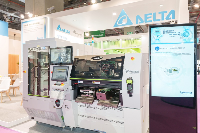 針對半導體封裝測試,台達與環球儀器展示高速多晶片先進封裝設備,對於多種晶片異材質組合封裝應用,提供業界最先進解決方案。