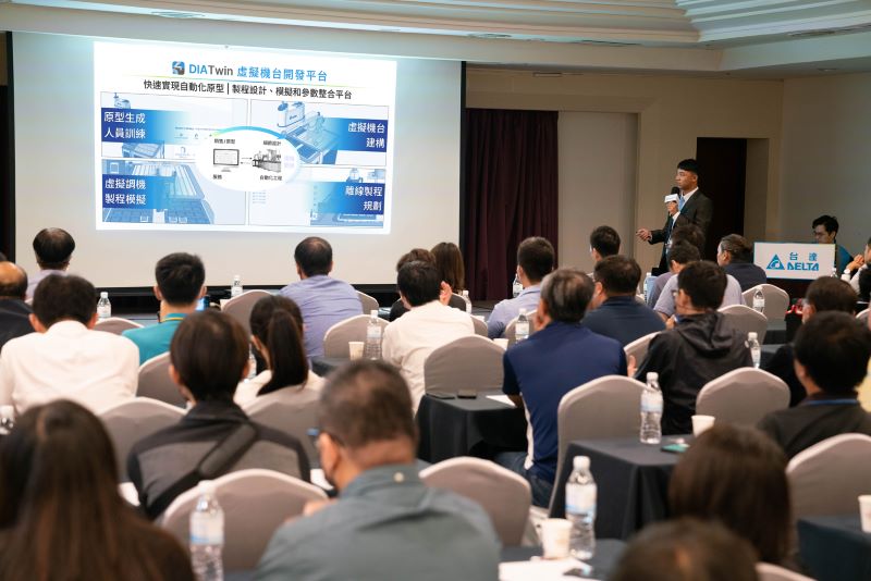 台達智能製造方案新事業發展部資深工程師邱時雍於台中場活動介紹數位雙生應用方案DIATwin,獲觀眾好評,現場座無虛席。