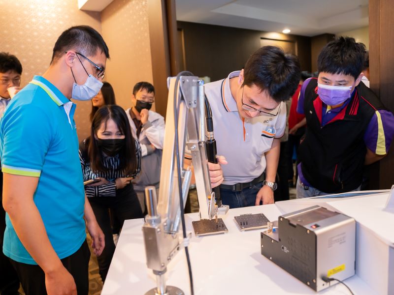 台南場來賓在台達運動方案事業部工程師何崇瑜介紹下,體驗操作智能螺絲鎖附系統。
