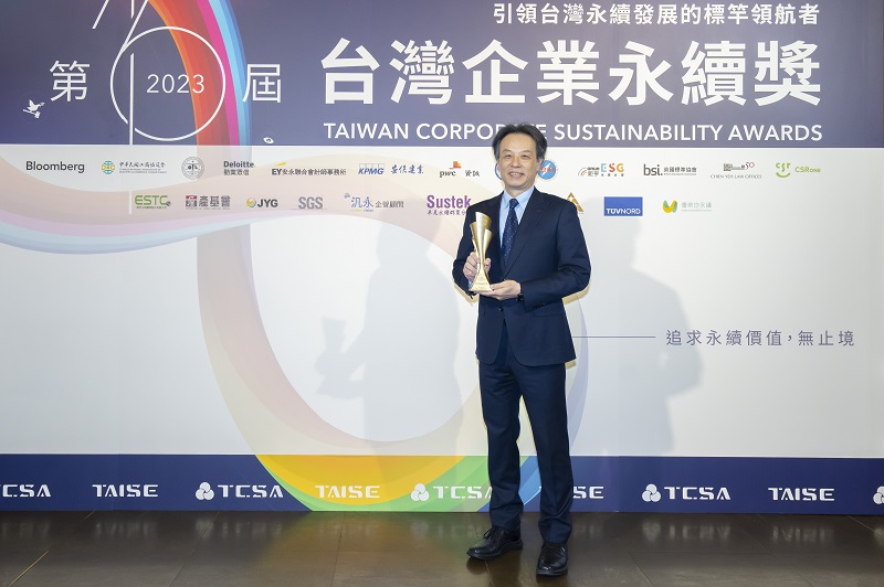 台達榮獲2023年《台灣企業永續獎》八項大獎,台達人資長陳啟禎代表領取殊榮。