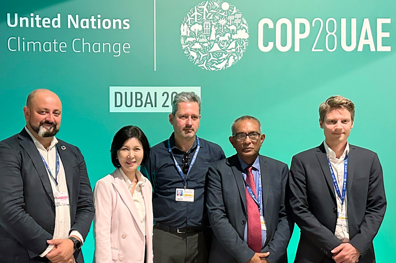 台達攜手國際組織共同於COP28舉辦周邊會議,台達品牌長暨基金會副董事長郭珊珊(左2)向國際分享內部碳定價實績。