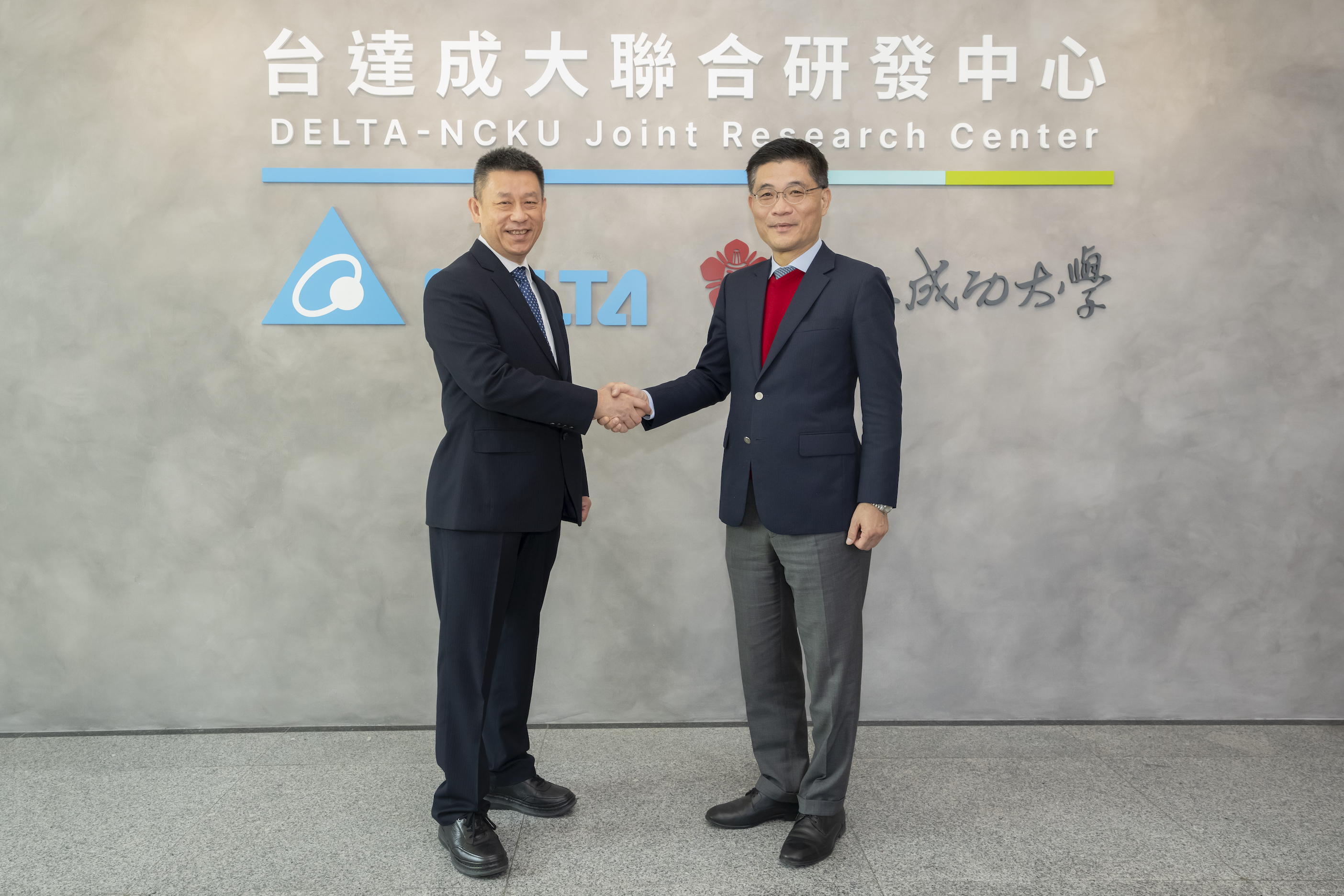台達成大聯合研發中心揭牌儀式,台達執行長鄭平(左)與成大校長沈孟儒(右)親自參與,期待中心運作順利。