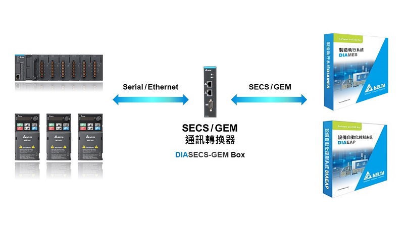方案核心為 DIASECS-GEM Box 通訊轉換器,無痛整合設備與上位系統端。