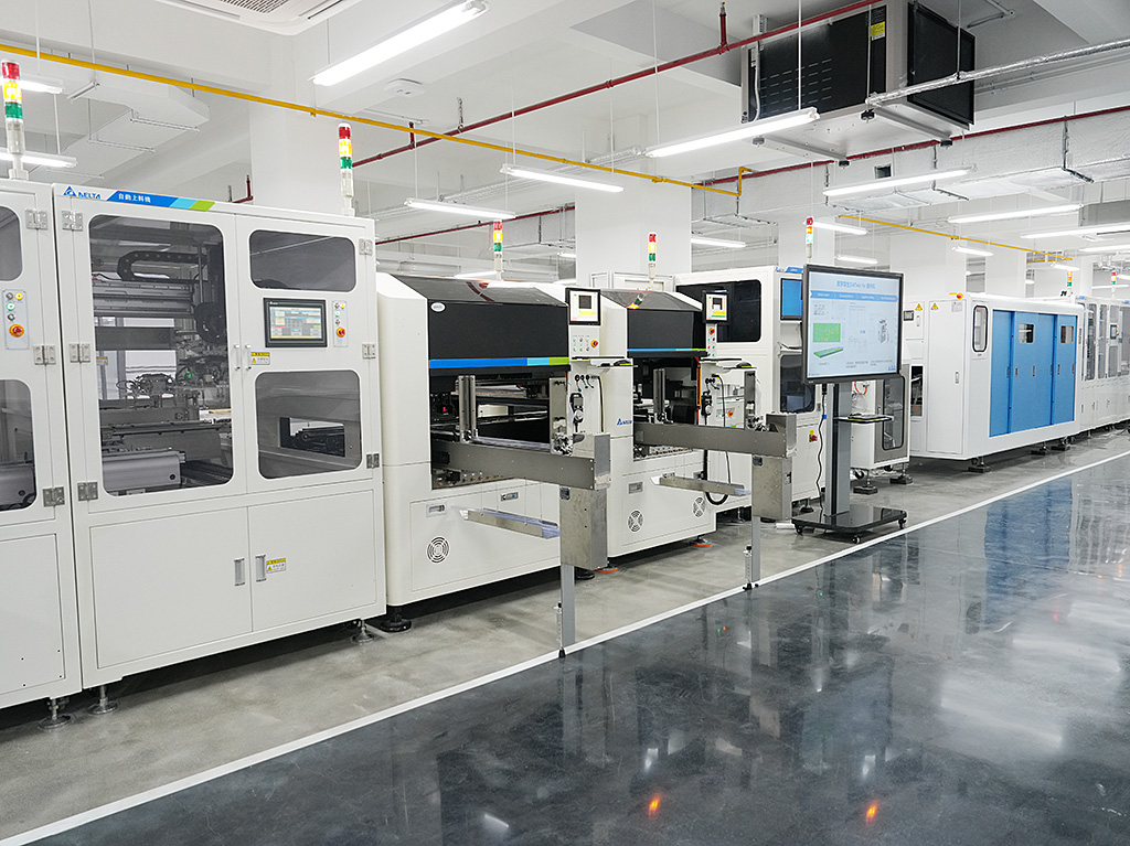 DIP插件製程段,展示插件、焊錫、錫面檢測、收板、分板等各台設備,可供客戶在試產新品前的驗證。另有點膠段、測試段等關鍵工序的驗證。