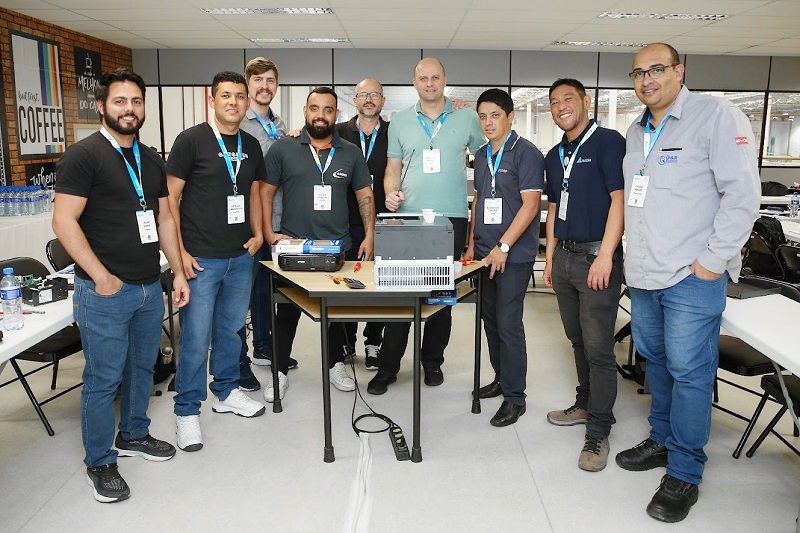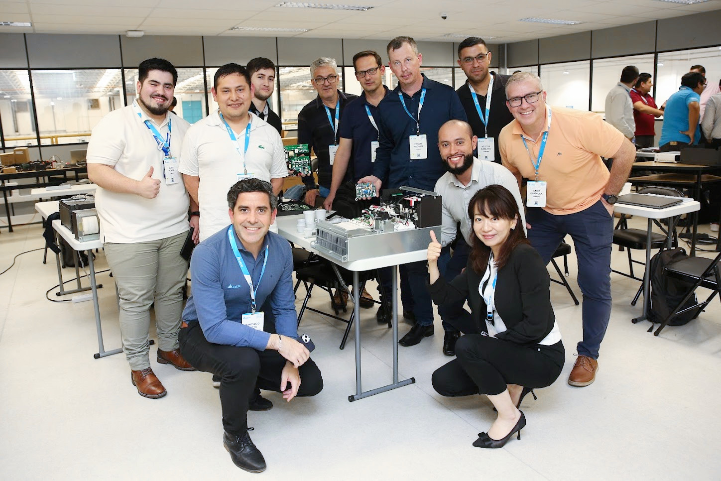巴西分公司 FAE 工程師與巴西 ASP 學員們,合力完成變頻器實作練習。