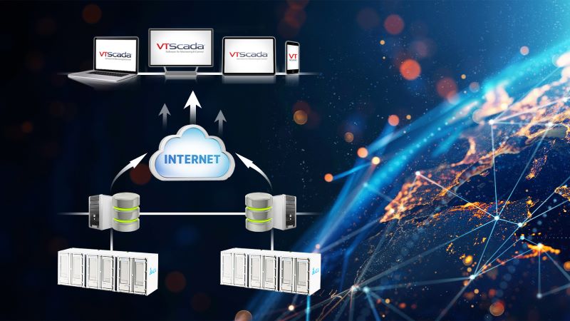 台達旗下工業圖控軟體 VTScada可跨廠區、跨域集中監控,為每個廠區皆提供系統備援;以手機瀏覽多地案場的即時監控畫面,更能有效降低維護時間成本。