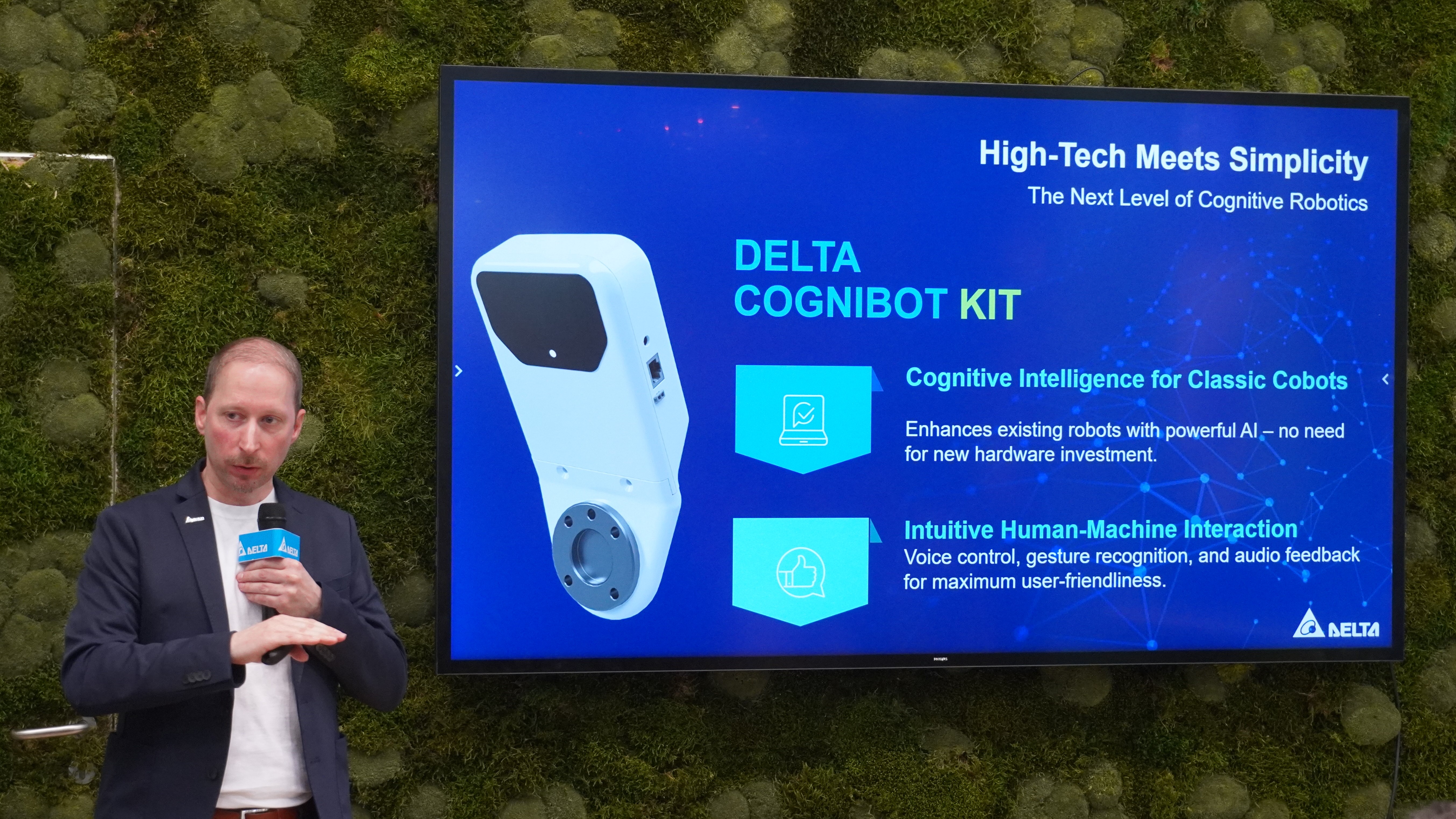 台達首度推出 Cognibot Kit,強化 D-Bot 協作機器人的 AI 功能與直覺性人機協作,具備 360° 語音識別、3D 物件偵測、手勢控制、語音回應、多模態AI互動等功能。